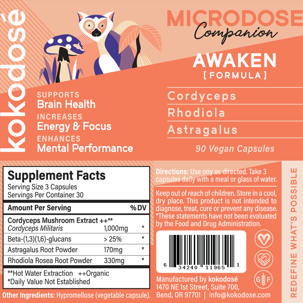Awaken Capsules combine Cordyceps, Rhodiola, and Astragalus to enhance stamina, cognitive clarity, and stress resilience.