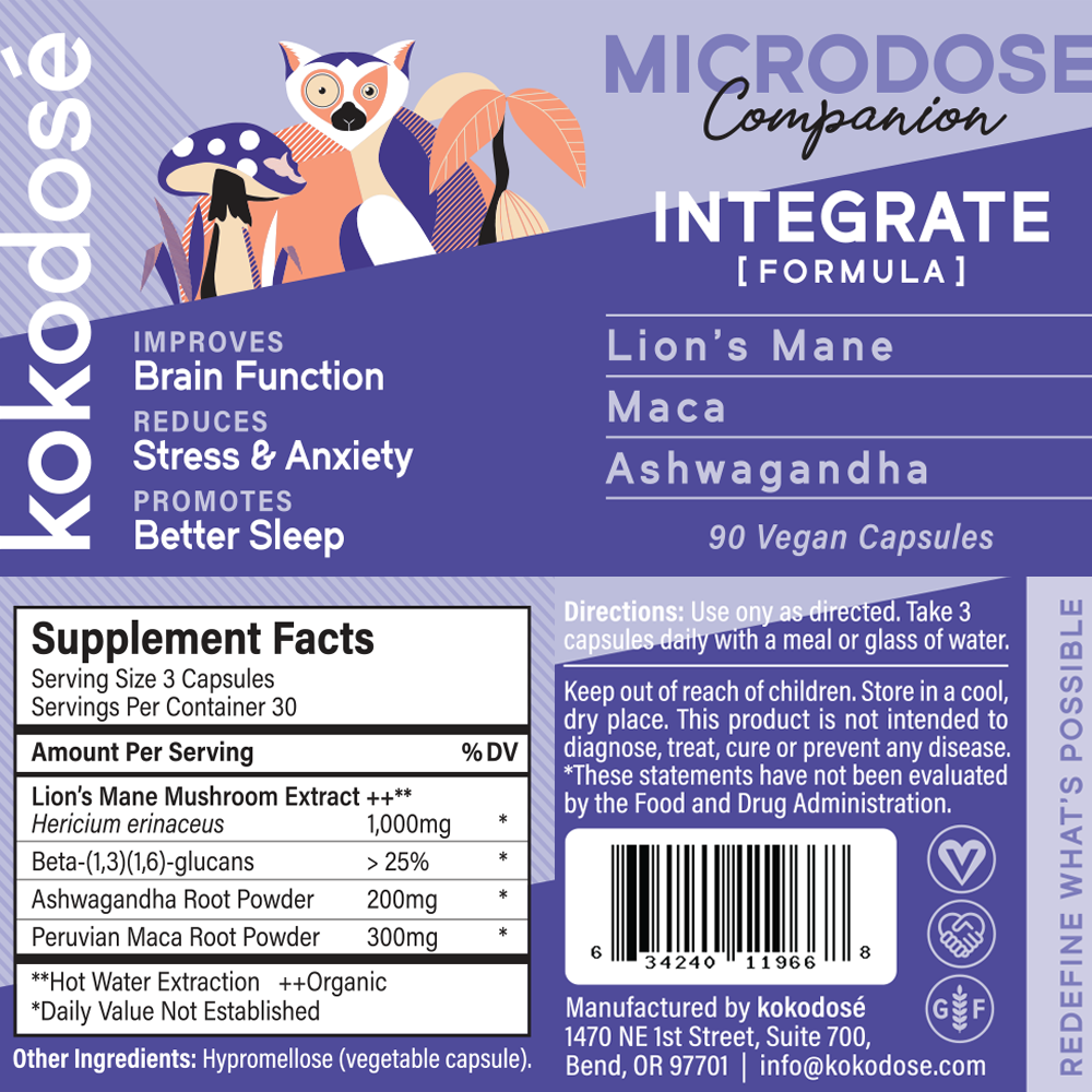 For optimal results, take 3 Integrate capsules daily, preferably in the evening. This formula is designed to support rest, recovery, and emotional processing—helping your body and mind integrate the day’s experiences and deepen your connection to self.